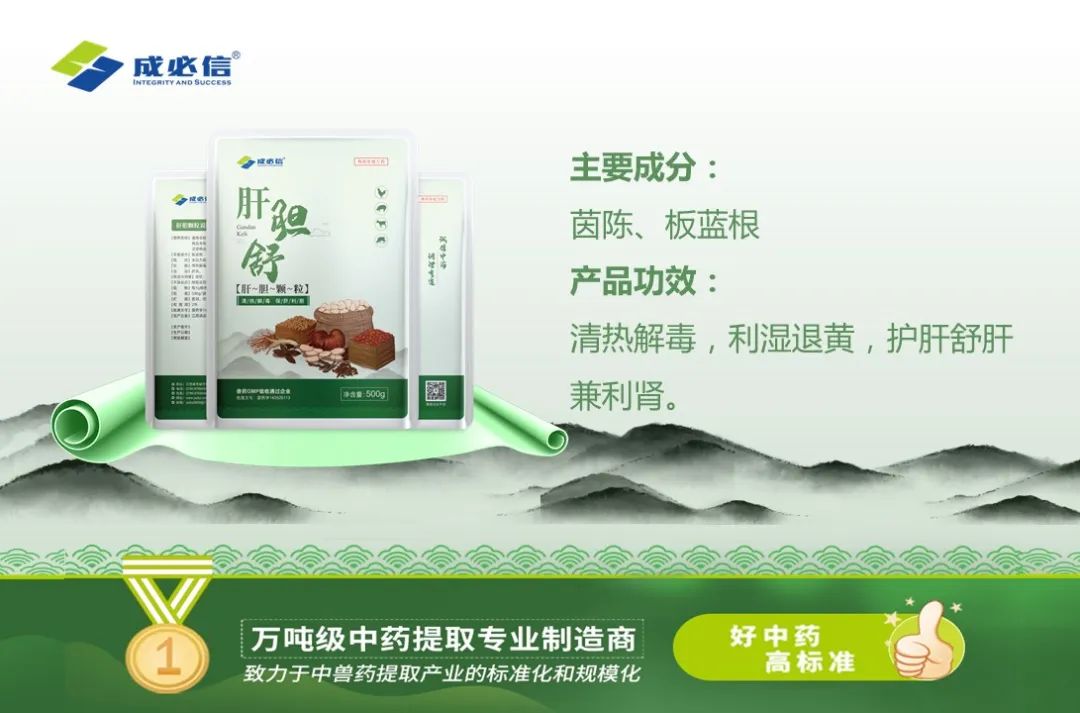 方案:肝膽舒2kg+健脾舒3kg拌料一噸飼喂。