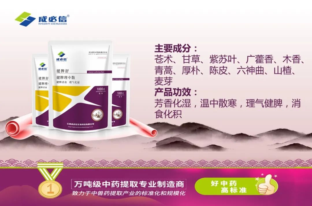 方案:甘益舒2kg+健脾舒3kg拌料一噸飼喂。