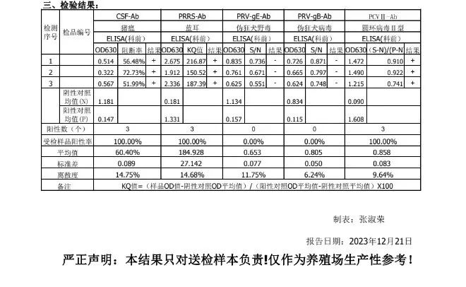 確定了方案的可靠性和一致性,同時(shí)自營(yíng)豬場(chǎng)(15000頭規(guī)模)堅(jiān)持使用方案的情況下斷奶仔豬檢測(cè)均以雙陰高標(biāo)準(zhǔn)交付;家庭農(nóng)場(chǎng)也在使用中得到驗(yàn)證和數(shù)據(jù)的支持(使用時(shí)間15天)