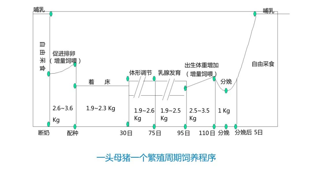 1、后備母豬從75kg體重開始飼喂,一直到配種后20天;